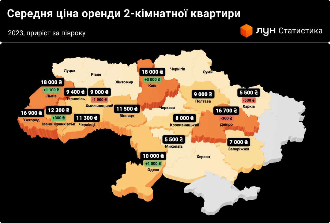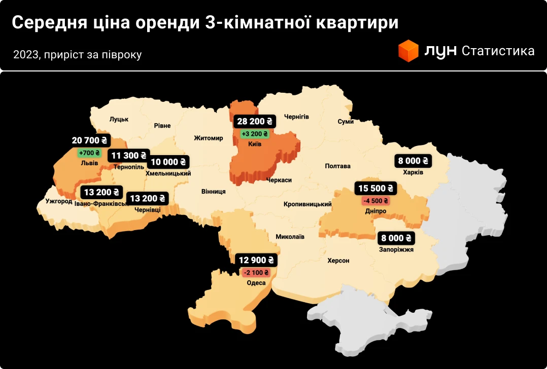 Київ займає третє місце за вартістю життя з ціною однокімнатної квартири у розмірі 13 000 грн за місяць (Львів — 16 000, Ужгород — 15 100). За ціною оренди двокімнатної столиця зрівнялась з лідером Львовом – 18 000 грн. Ймовірно, це повʼязано з меншим фондом маленьких квартир у Львові, котрі зайняли ще впродовж 2022 року, тому на ринку залишились лише дорожчі варіанти.