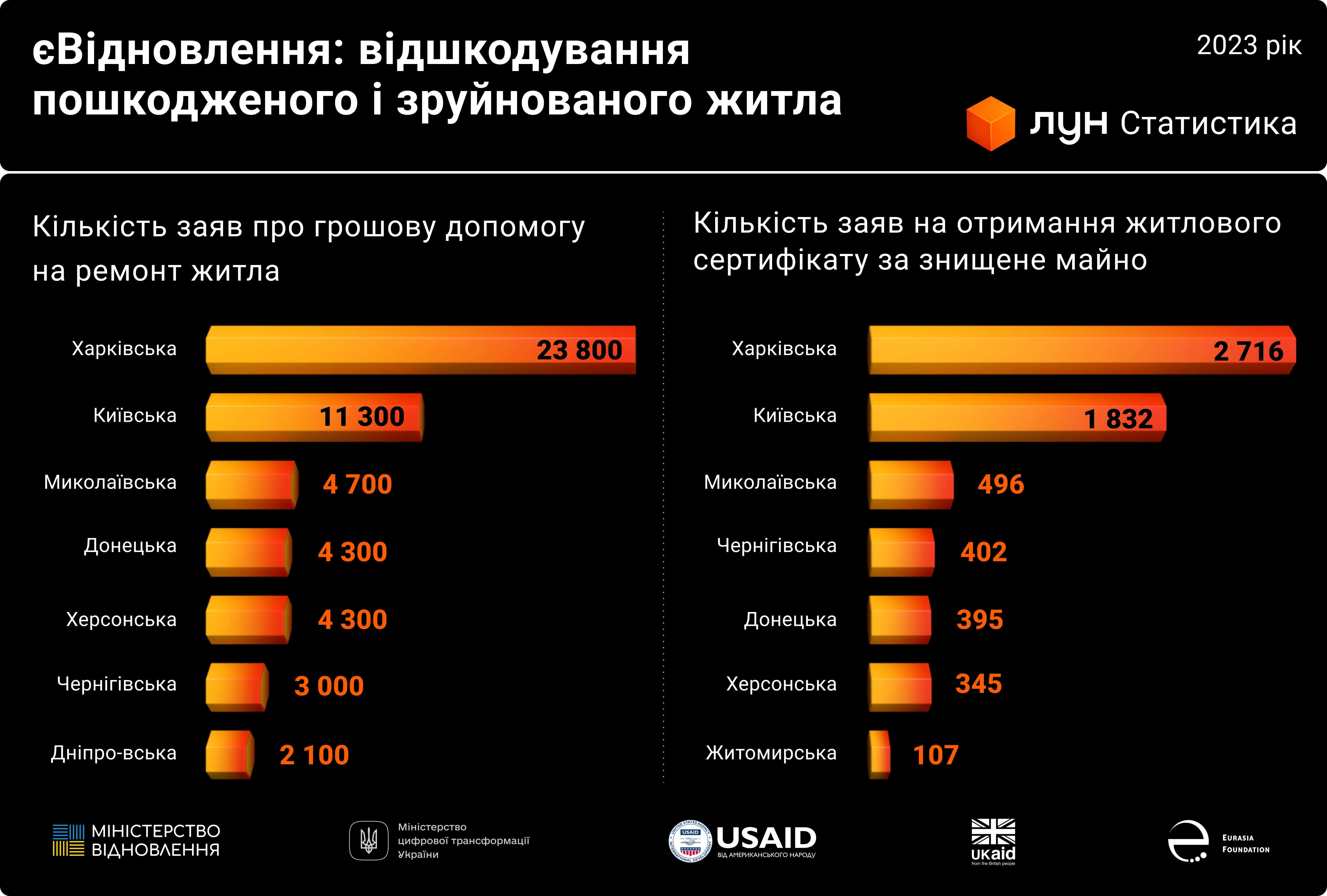 *Послугу єВідновлення запустили Міністерство цифрової трансформації України разом з Міністерством розвитку громад, територій та інфраструктури за підтримки проєкту USAID/UK Аid проєкту «Прозорість та підзвітність у державному управлінні та послугах/TAPAS» і Світового банку.