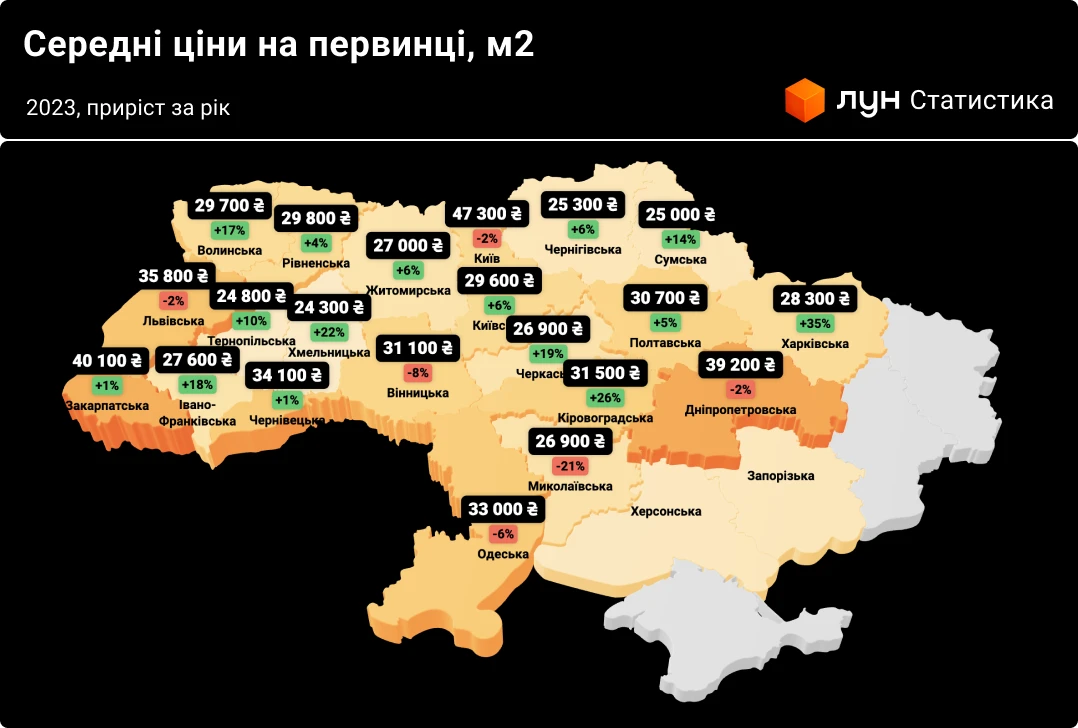 Регіони віддалені від зони бойових дій, виросли в ціні. Виключенням є столиця, котра з часу закінчення блекаутів, весни 2023, мінімально знизила середні ціни. Ймовірно, це повʼязано з міграційними процесами. Жителі Києва відкладають своє рішення про повернення додому, це особливо характерно для жінок з дітьми. До возз'єднання сімей рішення про купівлю нового житла відкладається, навіть якщо наразі для цього є фінансова спроможність.