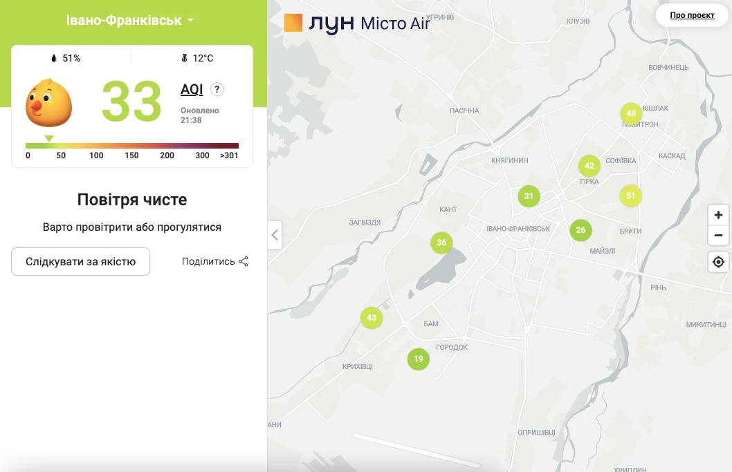 Карта ЛУН Місто AIR https://misto.lun.ua/air/ivano-frankivsk