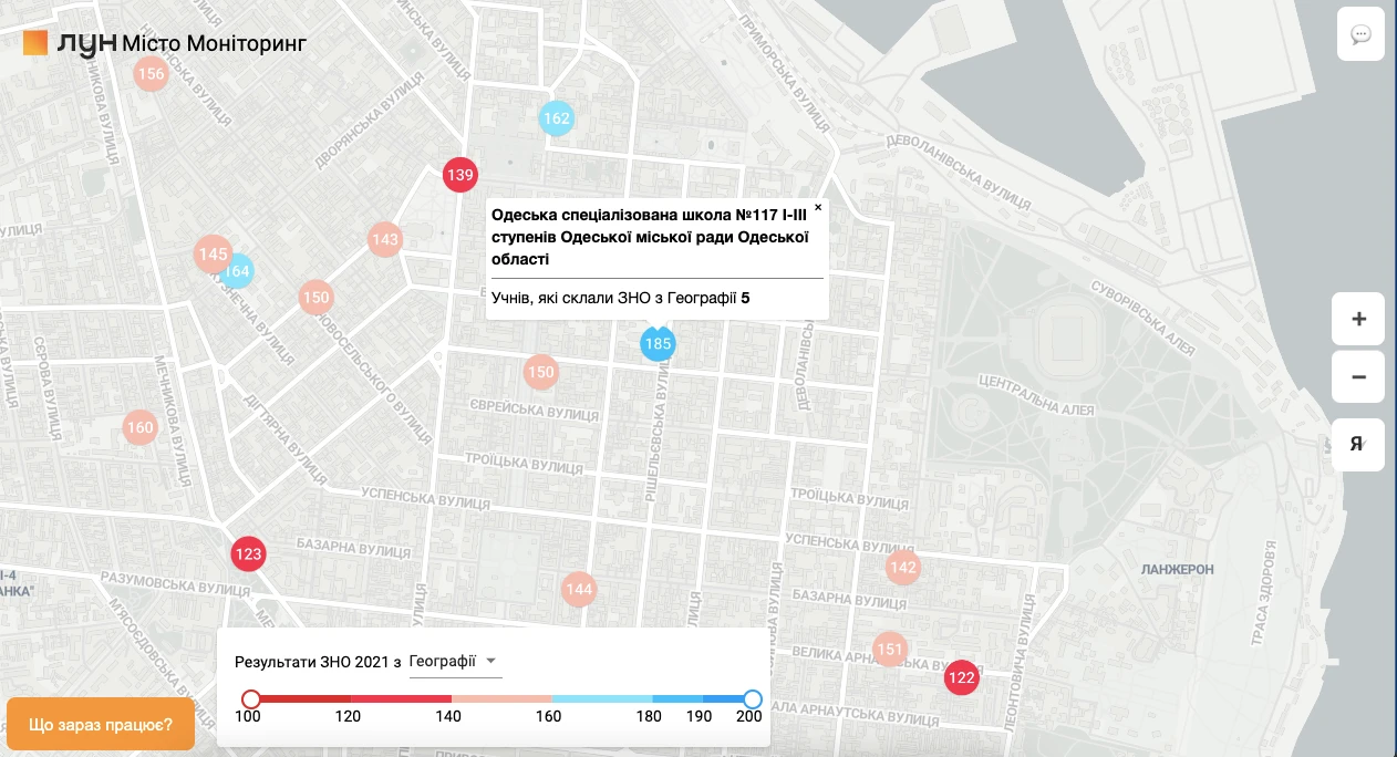 На інтерактивній карті ЛУН Місто можна порівняти, де краще 2021 року здавали українську мову, математику, англійську мову, біологію та інші предмети. Охоплення карти - школи України, учні яких складали ЗНО минулого року. Нагадаємо цього року через повномасштабну війну замість зовнішнього незалежного оцінювання проходив національний мультипредметний тест, НМТ.