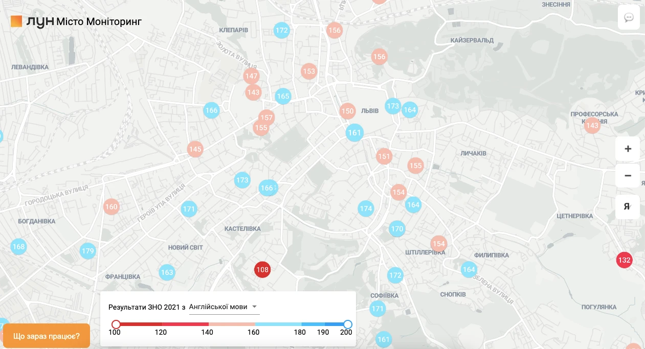Через війну багато українців були вимушені переїхати, часто на новому місці обирати школу. Один з критеріїв, за яким можна оцінити навчальний заклад - результати зовнішнього незалежного оцінювання - ЗНО. Тепер вони доступні на інтерактивній карті ЛУН Місто. Джерелом даних став розділ Opendata Українського центру оцінювання якості освіти.