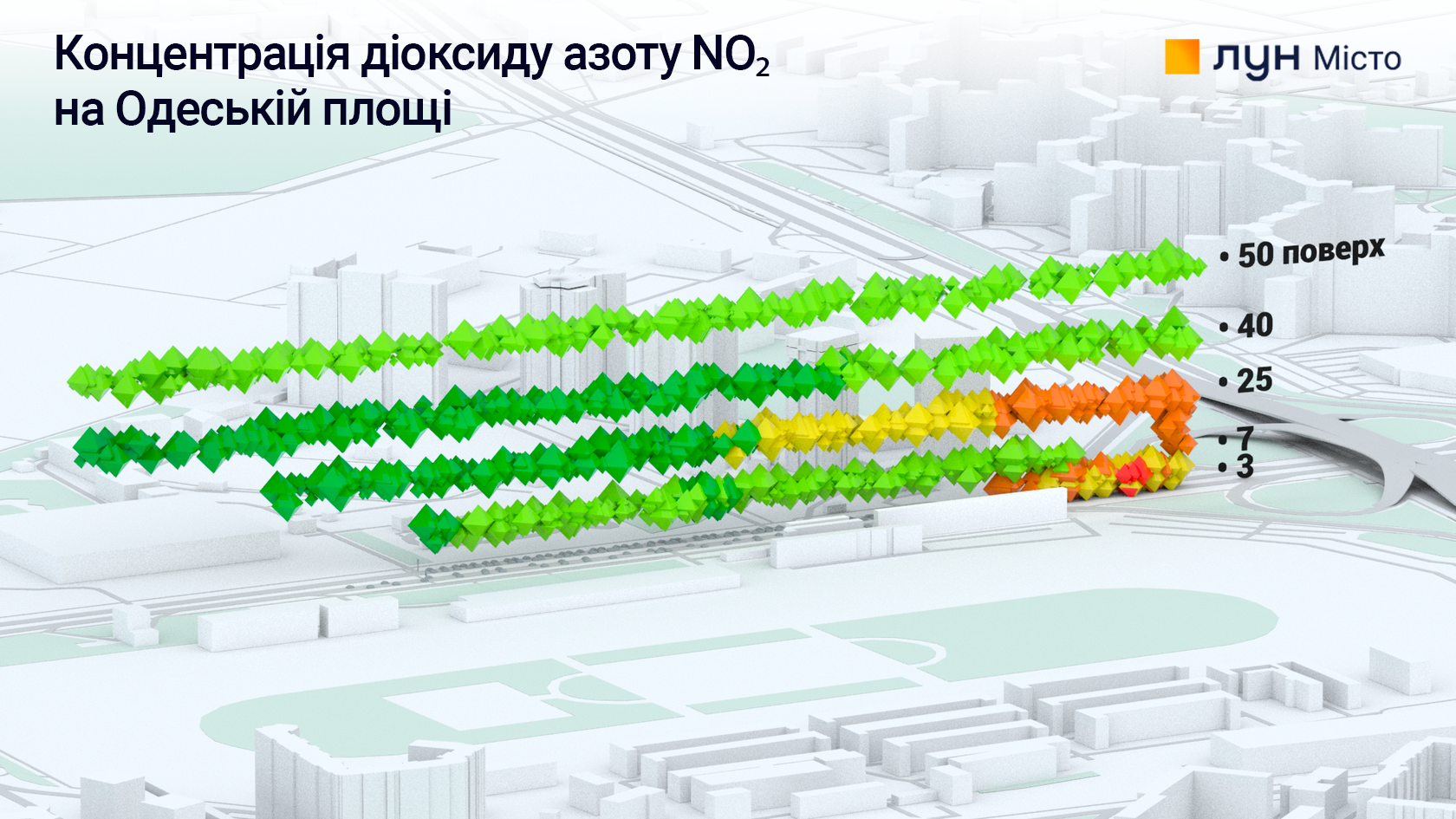 Але концентрація залежить не тільки від висоти над дорогою, а й від відстані від багаторівневої розв'язки.