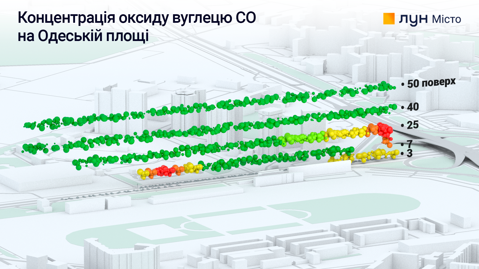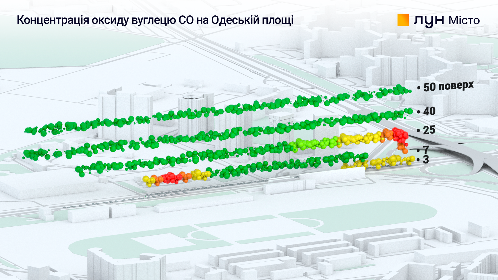 Найбільшу концентрацію СО в момент вимірювання ми спостерігали на 30–80 метрах, тобто аж до 25 поверху.