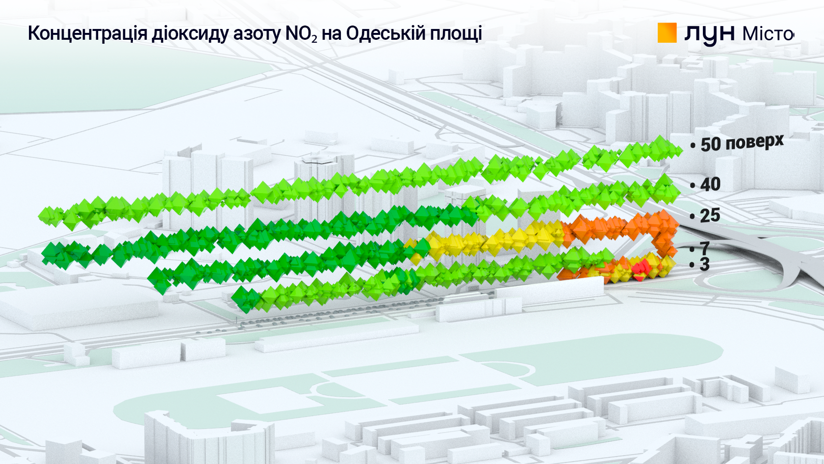 Для вимірювання ми обрали Одеську площу. Насправді жодної площі там немає: велика дворівнева транспортна розв'язка, навколо височіють житлові багатоповерхівки — нові та старі, неподалік — велика зелена зона ВДНГ.
