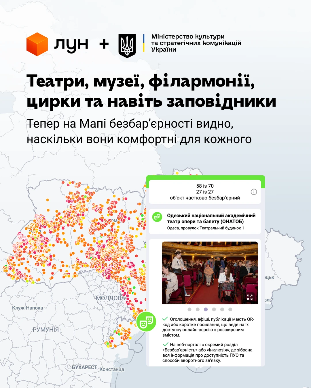 ЛУН і Міністерство культури запустили Мапу безбар’єрності культури: 5700 об’єктів по всій Україні