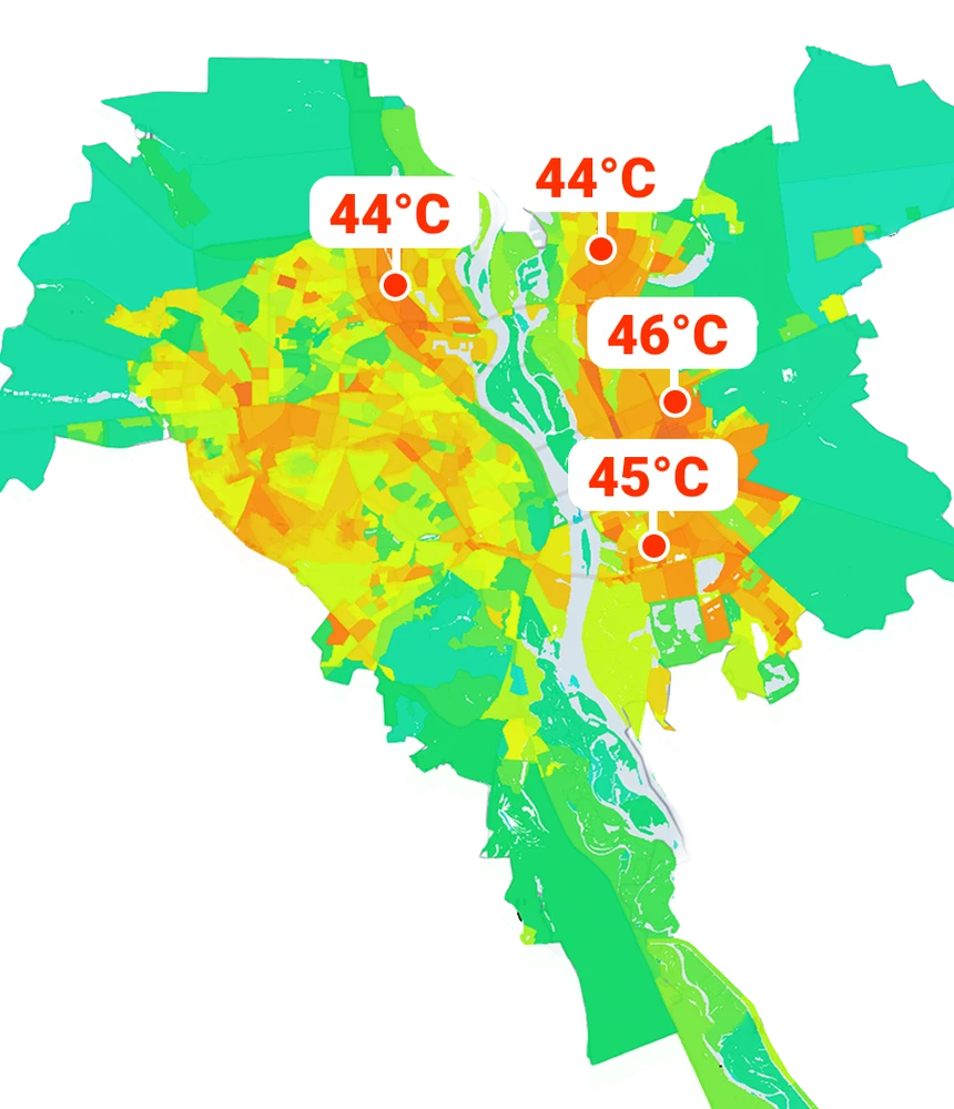 До ТОП-4 також увійшли Троєщина та Оболонь — у цих районах максимальна температура може підніматися до 44°C.