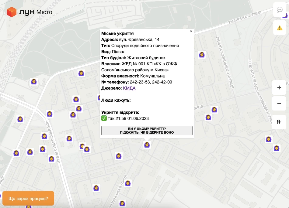 Виводимо на карту офіційні та неофіційні укриття, щоб кожен українець міг перевірити, чи відкрите укриття, та лишити відгук для інших