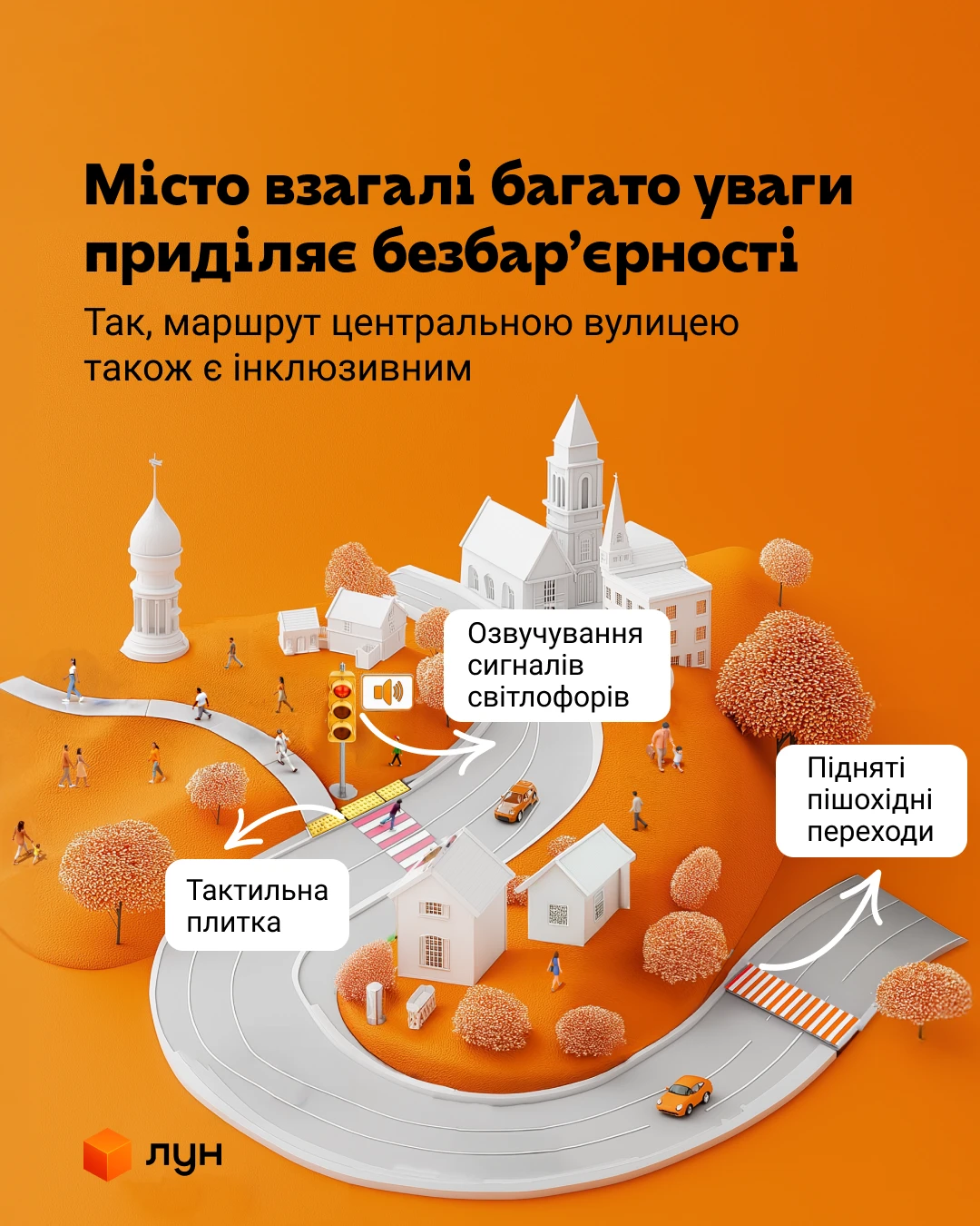 ЛУН Місто – громадська організація, соціальна ініціатива української ІТ-компанії ЛУН. Створює сервіси та дослідницькі проєкти, покликані зробити життя в місті більш комфортним. Від початку повномасштабного вторгнення бере активну участь у проєктах, повʼязаних з безбарʼєрністю, відбудовою, реінтеграцією ветеранів.