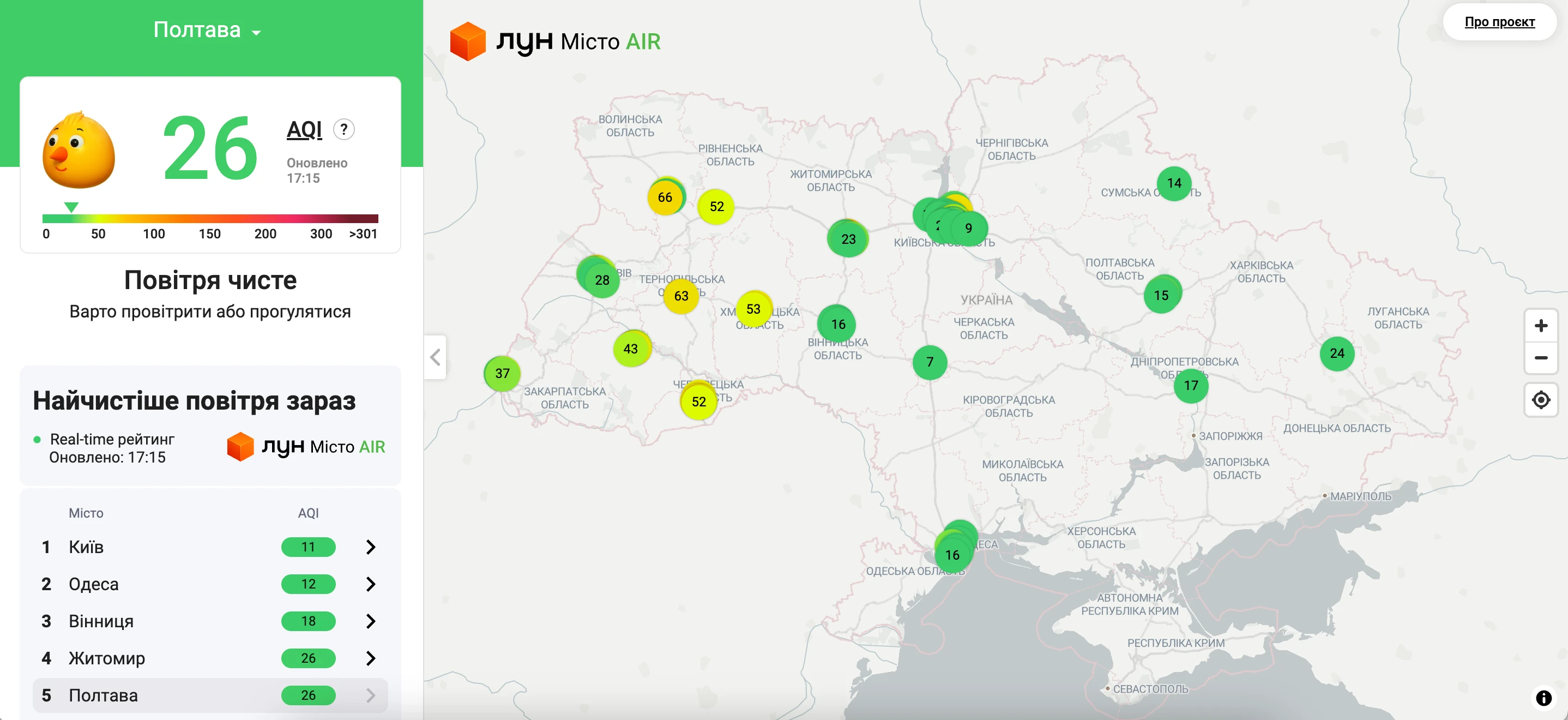 Тепер кожен полтавець може в реальному часі перевірити, наскільки чисте повітря за вікном, зайшовши на сайт, встановивши безкоштовний додаток чи запустивши чат-бот. А також порівняти показники у різних містах України за допомогою рейтингу.