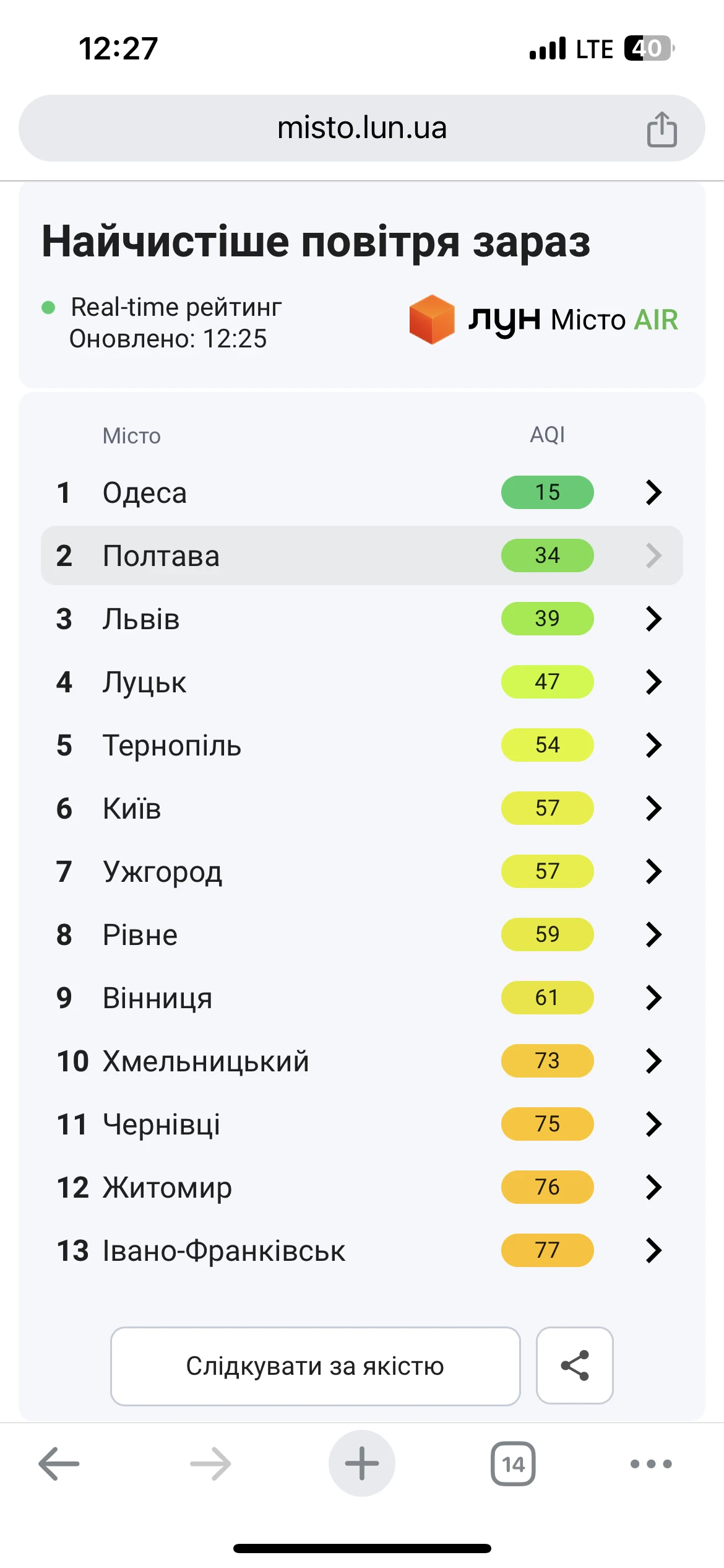 23 жовтня 2024 року відбувся офіційний запуск проєкту моніторингу якості повітря у Полтаві від ЛУН Місто AIR — https://misto.lun.ua/air/poltava.