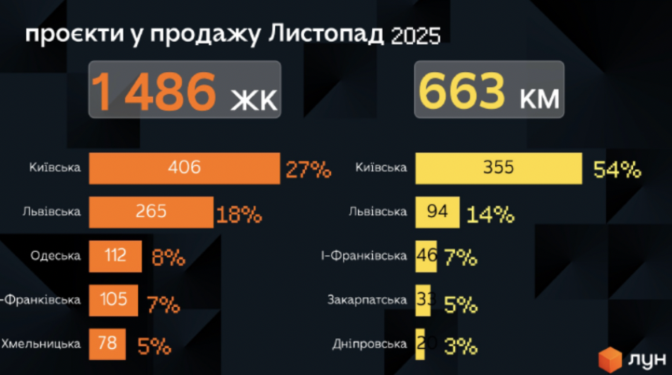 При цьому більшість активних новобудов зосереджена в Києві та Київській області - тут найбільший вибір і серед багатоквартирних будинків, і серед котеджних містечок. Більше того, в Києві та області цьогоріч спостерігалося неймовірне зростання: в 2025 кількість нових проєктів зросла на 70% у порівнянні з минулим роком, - говорить пані Олена.