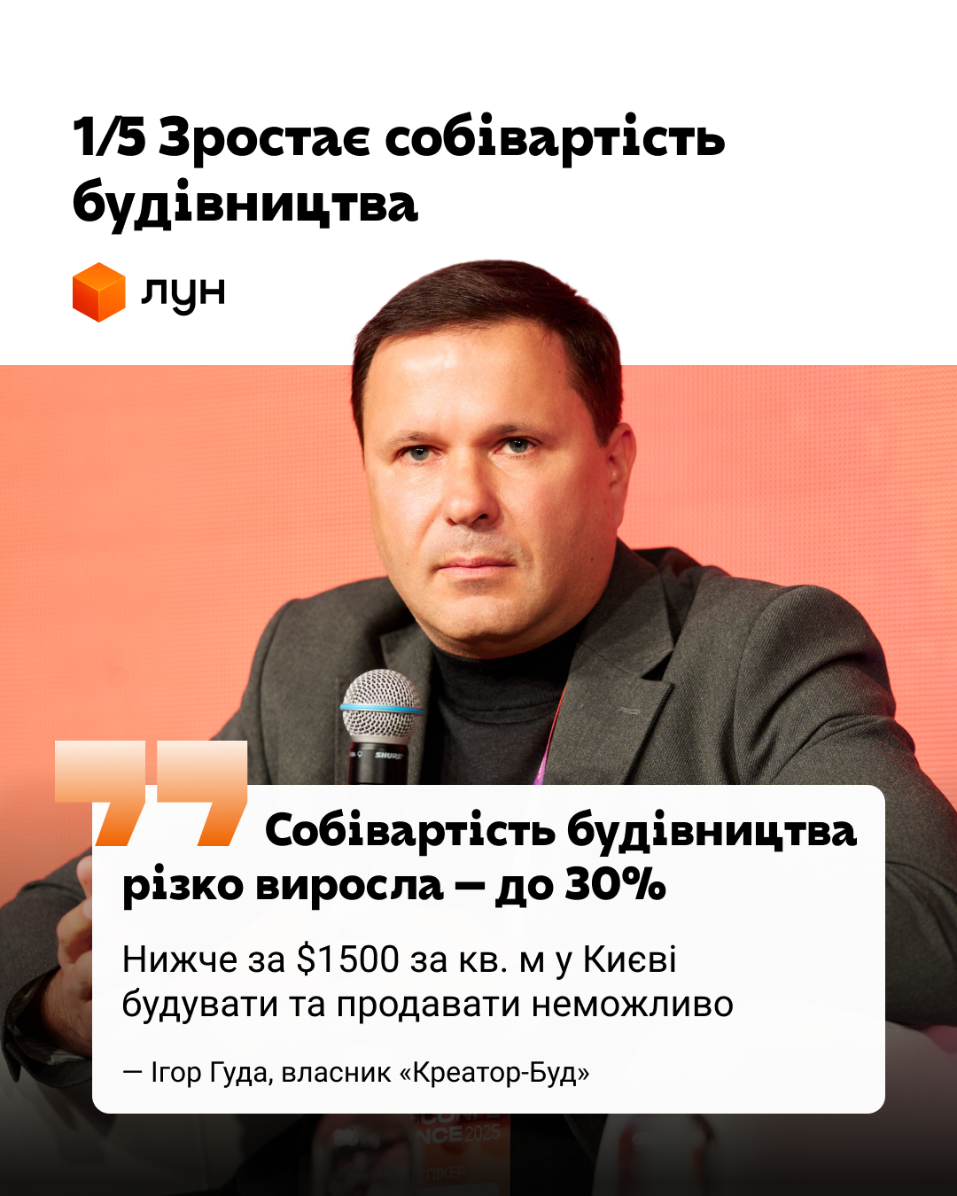 Ігор Гуда (власник «Креатор-Буд») констатував: «Собівартість будівництва різко виросла, до 30%». За його словами, нижче за $1500 за кв. м у Києві будувати та продавати неможливо.