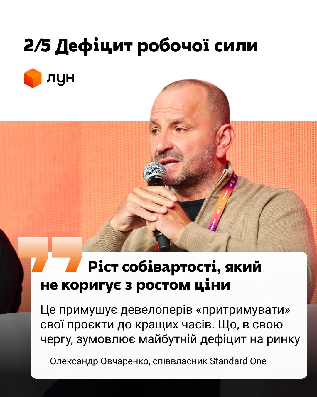 Олександр Овчаренко (співвласник Standard One) відзначив, що ріст собівартості, який не коригує з ростом ціни примушує девелоперів «притримувати» свої проєкти до кращих часів. Що, в свою чергу, зумовлює майбутній дефіцит на ринку.