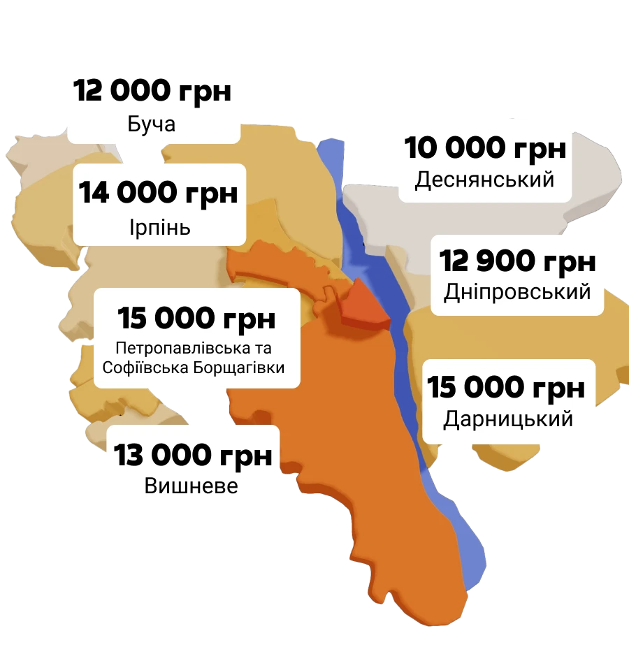 Щодо 2-кімнатних квартир, то наприкінці жовтня в деяких передмістях винаймати їх також дорожче, ніж в більшості районів столиці. Зокрема, в Софіївській Борщагівці середня вартість «двушки під оренду» (21 тис. грн) вища, ніж в Деснянському (12,5 тис. грн), Дніпровському (15 тис. грн), Дарницькому (18 тис. грн), Оболонському (18 тис. грн), Святошинському (16 тис. грн) та Солом'янському (18 тис. грн) районах.