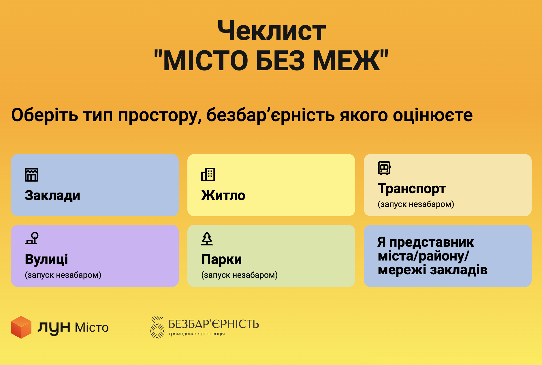 У моніторингу допоможуть Чеклисти Місто без меж, які ми розробили спільно з ГО Безбарʼєрність – виконавчим партнером ініціативи першої леді Олени Зеленської «Без бар’єрів», спрямованої на створення рівних можливостей для всіх українців.