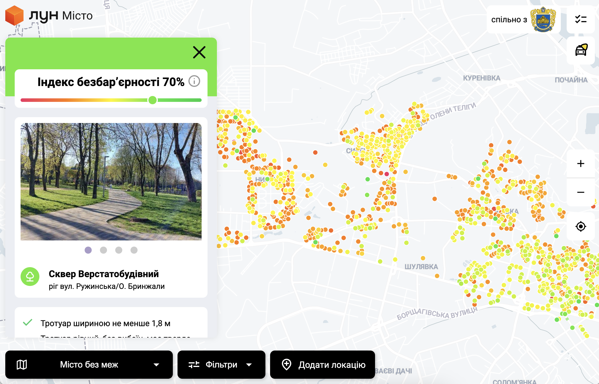 Загальноукраїнська Мапа Місто без меж – майданчик, де на одній платформі зібрана найповніша інформація щодо рівня безбарʼєрності просторів у країні.