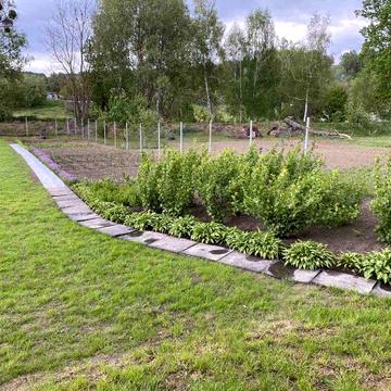 Будинок розташований на великій доглянутій земельній ділянці, огородженій по периметру. Є газон, фруктові (яблуні, персик, черешні, абрикос) та декоративні дерева, квіти, город, полуниця, малина, смородина, порічка. На території є альтанка з терасними меблями, гараж, господарське приміщення, погріб для зберігання консервації та овочів, вольєр для собак.