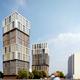 Архитектурной особенностью комплекса станут консольные секции высотой в 6 этажей, смещенные в разные стороны. Смещение подчеркнуто и в оформлении фасадов: градиент меняется от темных оттенков к светлым в зависимости от высоты секции.