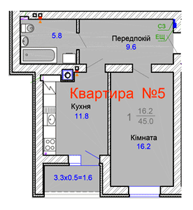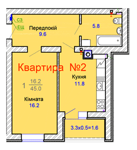 45 м²