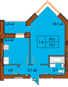 39.1 м²