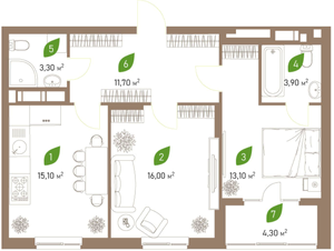2 комнаты