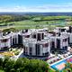 В комплексе есть как открытые общественные пространства, так и закрытые внутренние сады и променады. Концепция проекта предусматривает разнообразное озеленение с цветами, плодовыми деревьями и злаками, что создает впечатление настоящего сада. Дополняют эту картину зоны для отдыха: скамейки, качели и лежаки у фонтана.