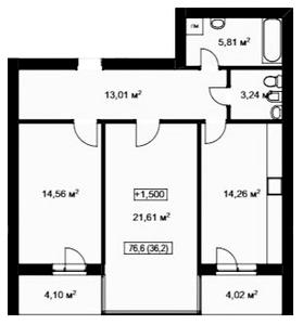 76.6 м²
