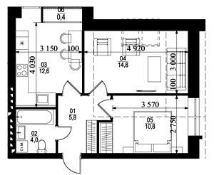 56.96 м²
