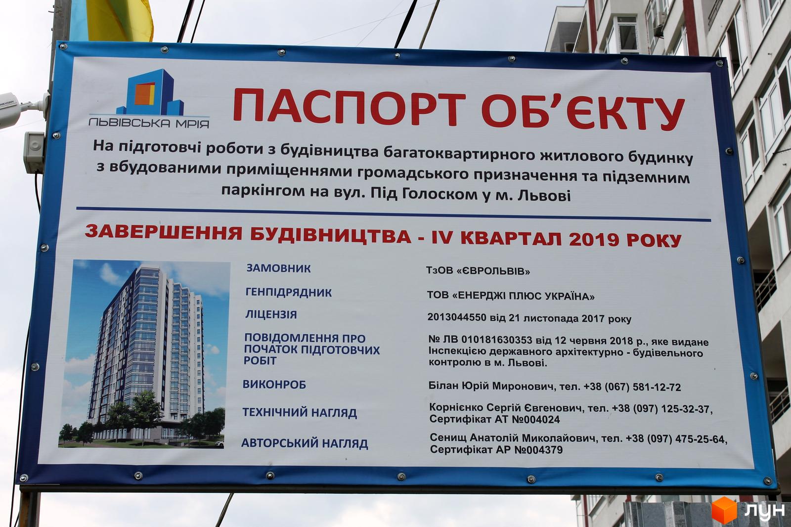 27.06.2019 составлен акт по результатам проведения мероприятия государственного надзора по соблюдению требований законодательства в сфере градостроительной деятельности. Установлено, что проектная документации объекта разработана с нарушением исходных данных на проектирование, а именно градостроительных условий и ограничений, утвержденных решением исполнительного комитета Львовского городского совета от 23.02.2018 № 191. Проектная документация, представленная на рассмотрение Львовском городском совете, содержала двухсекционный дом этажностью 16 и 10 этажей. Фактически передана заказчику проектная документация разработана на многоквартирный жилой дом со встроенными помещениями общественного назначения и подземным паркингом на ул. Во Голоском на односекционный 16-этажный многоквартирный жилой дом со встроенными помещениями общественного назначения и подземным паркингом на ул. Под Голоском.