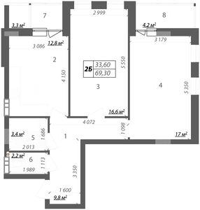 69.3 м²