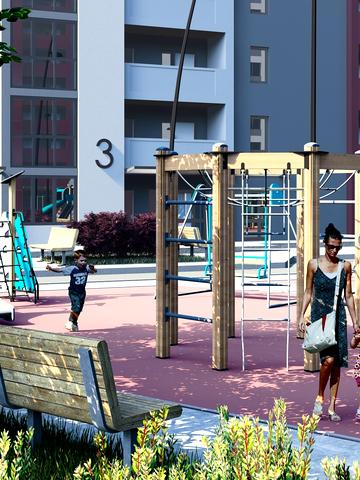 - Придомовая территория, которую имеют недорогие новостройки Киева, не огораживается, но обязательно благоустраивается зонами для отдыха и детского досуга.