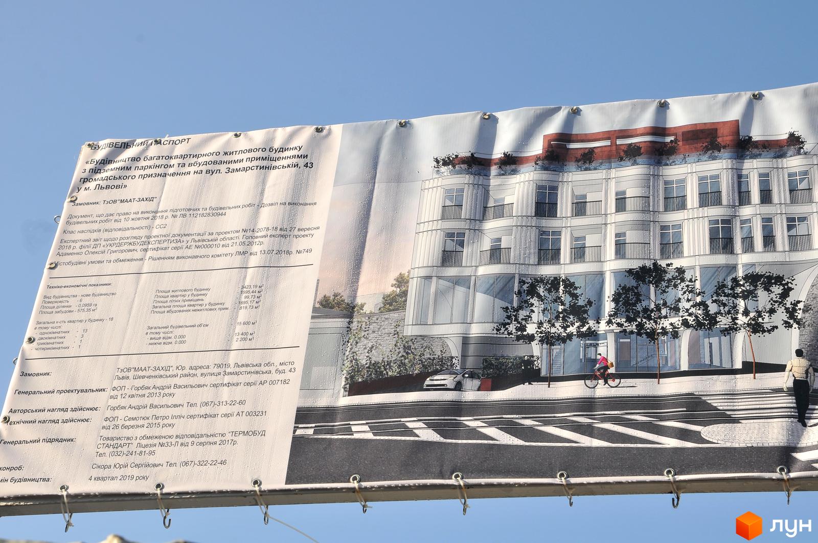 Утверждено Приказом №749 от 13.07.2018 г. на строительство многоквартирного жилого дома с подземным паркингом и встроенными помещениями общественного назначения по ул. Замарстыновской, 43.