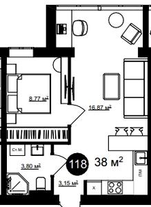 38 м²