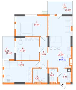 87.46 м²