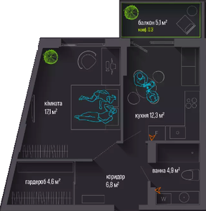 Этажи: 2-3, 5-6, 8-9, 11-12