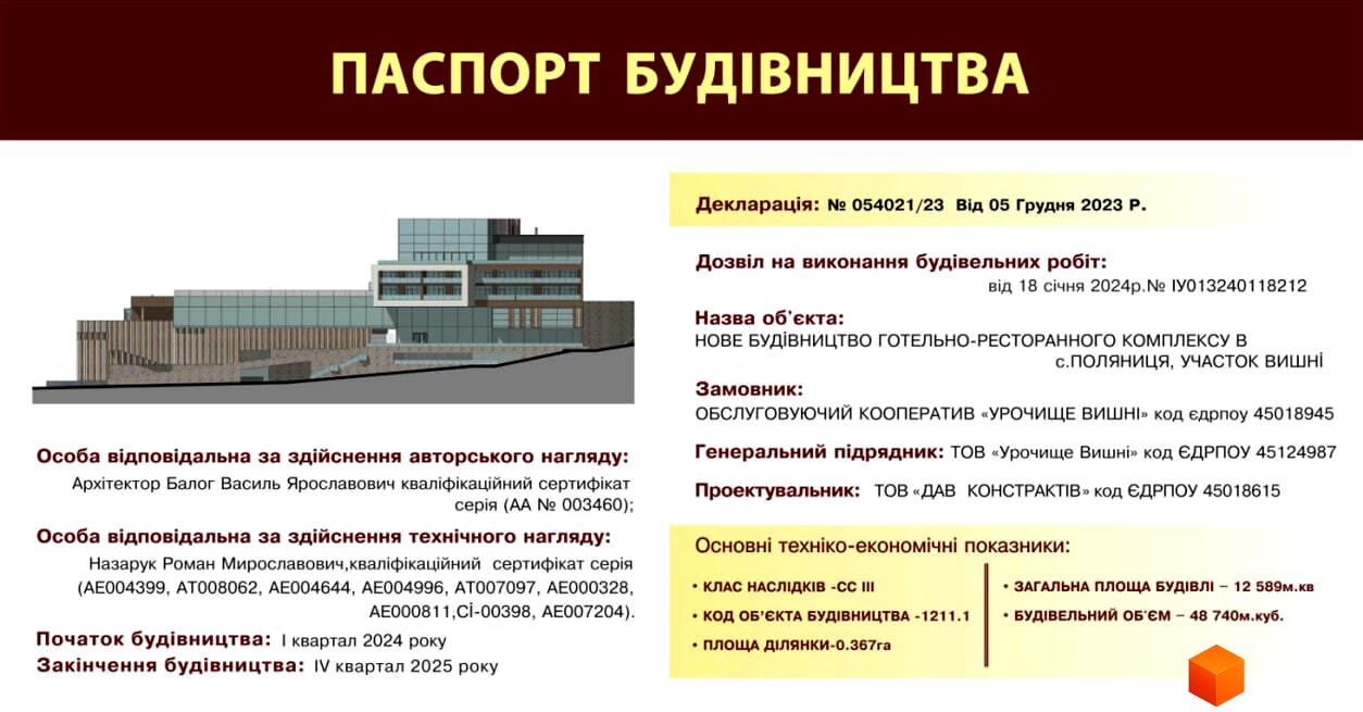 Лицензия генподрядчика ООО "Урочище Вишні", утвержденная Декларацией №054021/23 от 05.12.2023