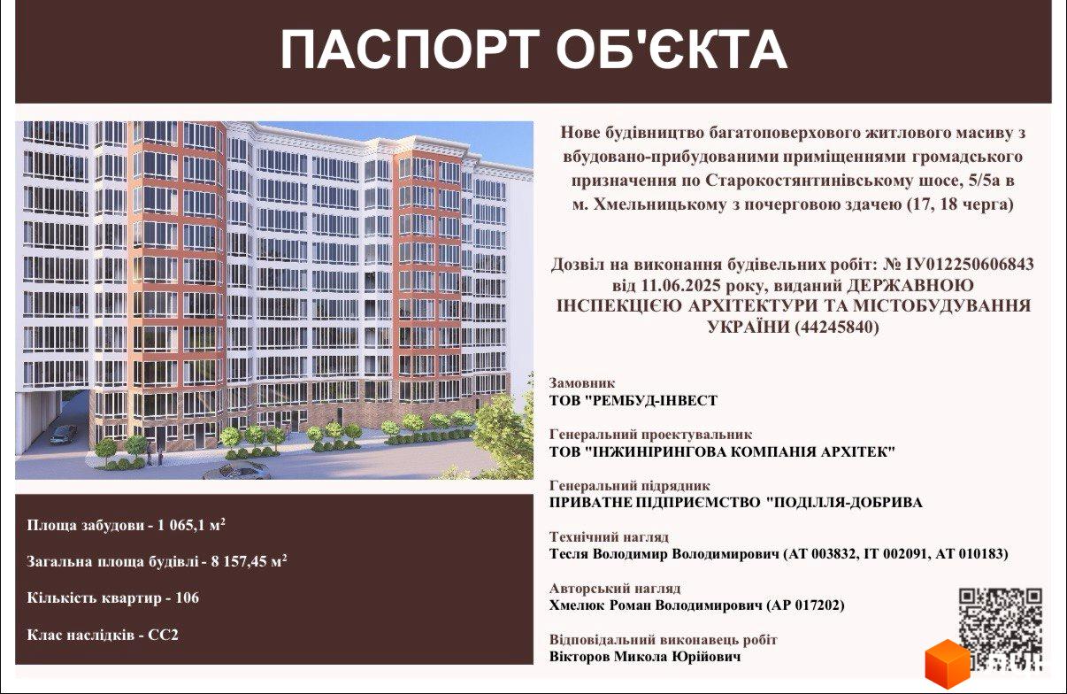 Выдано Управлением архитектуры и градостроительства Хмельницкого городского совета, ГУО № 8 от 24.01.2019 года