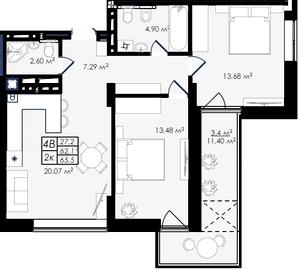 64.6-64.7 м²