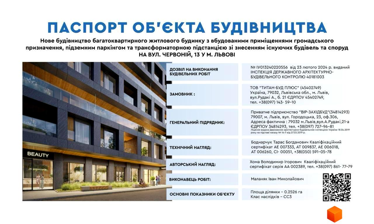 Разрешение на выполнение строительных работ № ІУ013240220556 от 23.02.2024 (Новое строительство многоквартирного жилого дома со встроенными помещениями общественного назначения, подземным паркингом и трансформаторной подстанцией со сносом существующих зданий и сооружений)