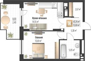 1-комнатные квартиры от