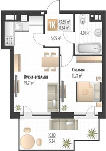43.65 м²