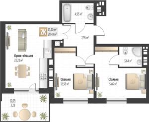 2 комнаты