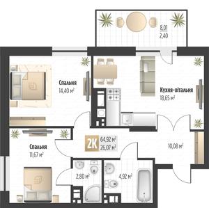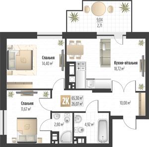 64.92 м²