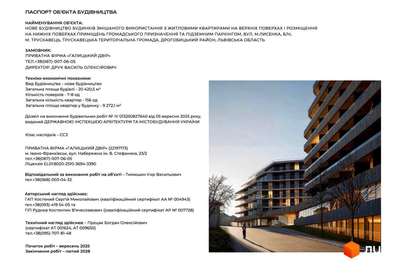 Разрешение на выполнение строительных работ ІУ013250827640 от 05.09.2025 года (Новое строительство домов смешанного использования с жилыми квартирами на верхних этажах и размещение на нижних этажах помещений общественного назначения и подземным паркингом)