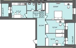 91.29 м²