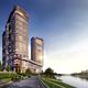 дизайнерская архитектура зданий с каскадной этажностью от 6 до 25 этажей, плавными линиями и панорамным остеклением фасадов