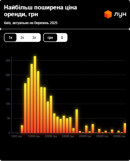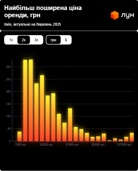 У найдорожчих 2-кімнатних вартість оренди стартує з позначки 100 тис. грн на місяць. За такими цінами орендодавці пропонують близько 50 варіантів.