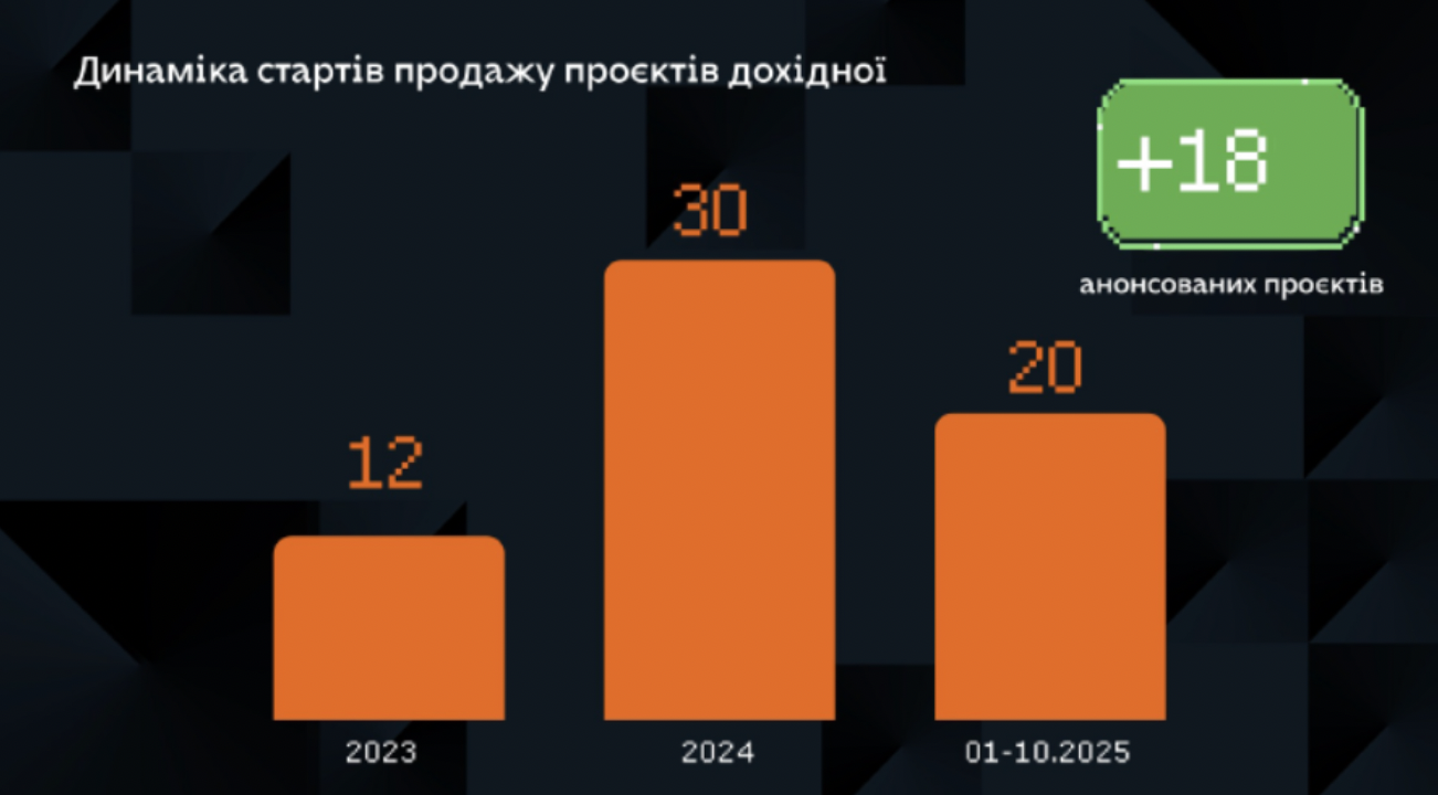 В Україні вже реалізується 75 проєктів дохідної нерухомості. Абсолютна більшість з них зосереджена в трьох західних областях: Івано-Франківській, Львівській та Закарпатській, - зазначає Олена Унаньян. - І цей сегмент демонструє вибухове зростання: якщо у 2023 році в країні було запущено 12 таких проєктів, то у 2024 - вже 30. А за неповний 2025 рік вже стартувало 20 і ще 18 нових проєктів анонсовані до запуску. Це свідчить про високий інвестиційний інтерес до цієї ніші, і саме тому ми виділили його в окрему категорію. Тепер на ЛУН легко знайти та порівняти різні проєкти дохідної нерухомості.