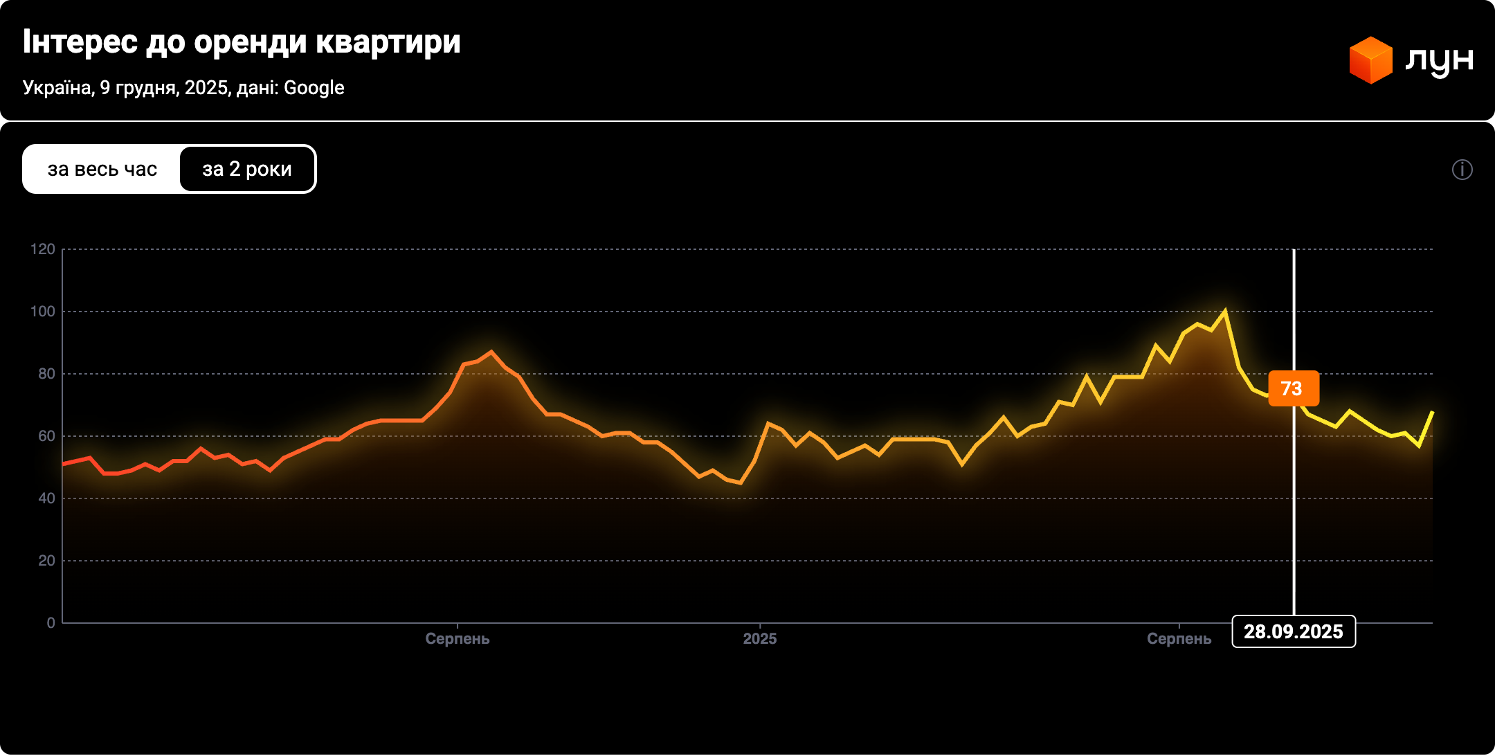 В 2025 році цікавість українців до оренди зросла, у порівнянні з минулим роком. Про це свідчать як дані ріелторів, так і гугл тренд.